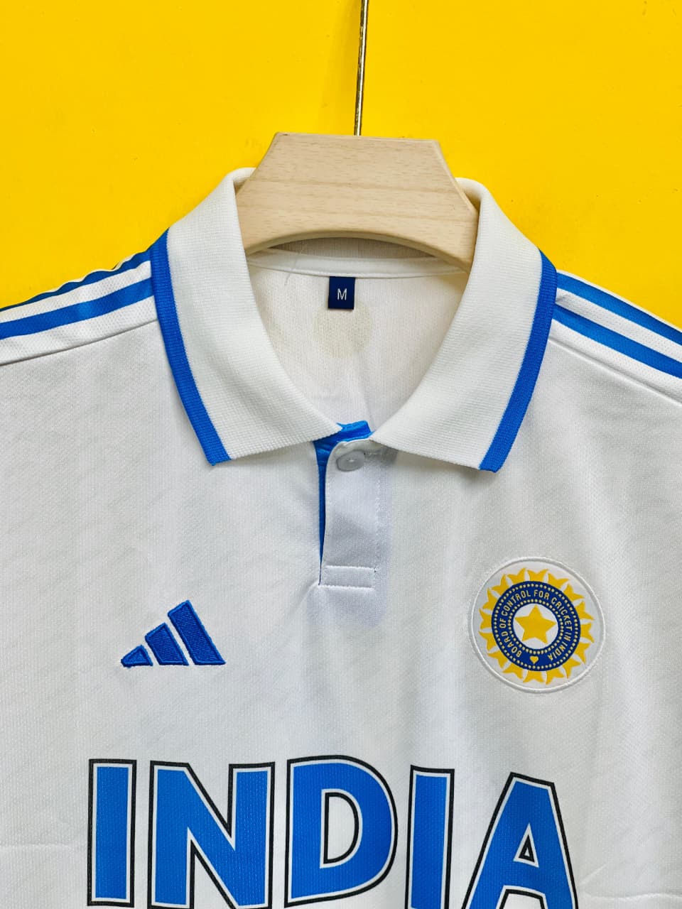 Show your pride for Team India with this stylish white jersey. Designed with a clean and modern look, this jersey gives a premium feel and stands out with its bold “INDIA” print.