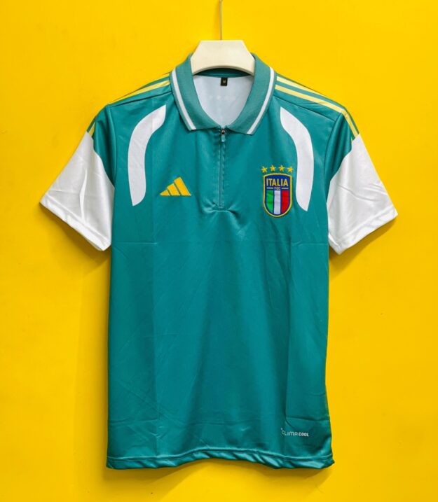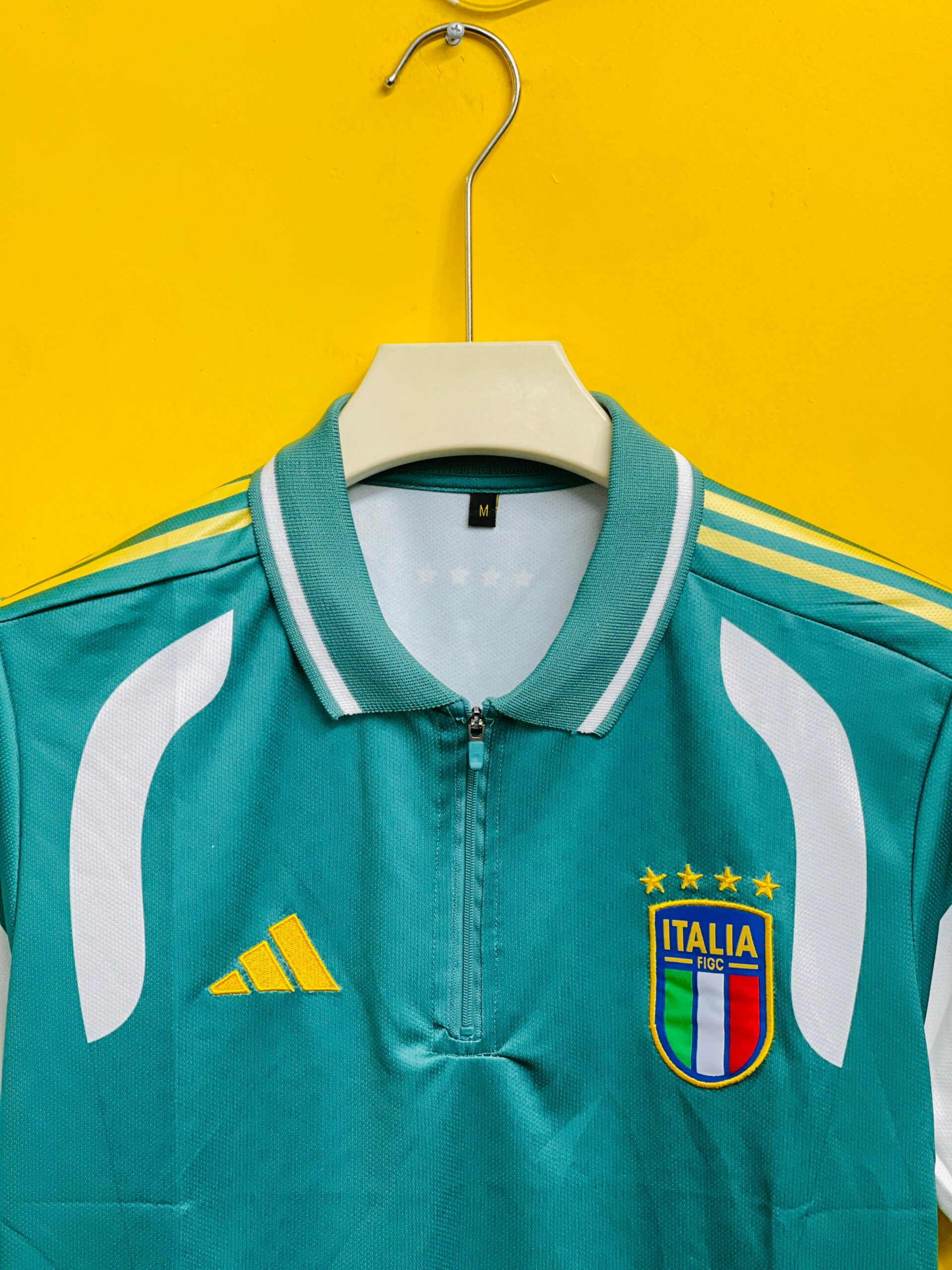 Stand out with this stylish Italy green jersey, designed with a modern and premium look. Featuring a unique green color with white sleeve accents and the iconic Italy crest, this jersey is perfect for true football fans.