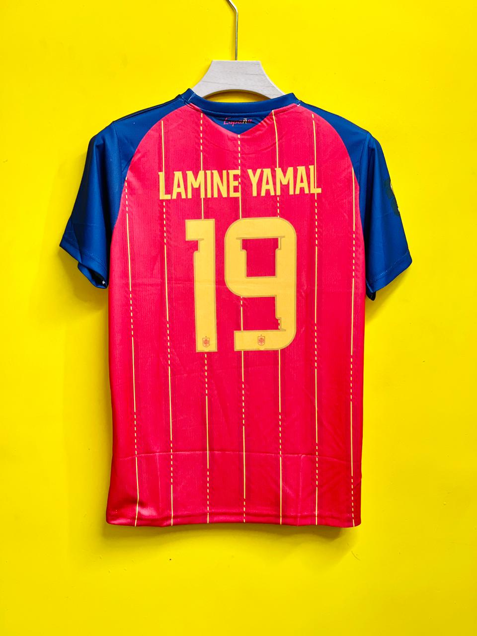 Show your love for football with this stylish Barcelona jersey featuring Lamine Yamal #19. Designed with the iconic red and blue stripes and bold golden print, this jersey gives a premium and trendy look for true fans.