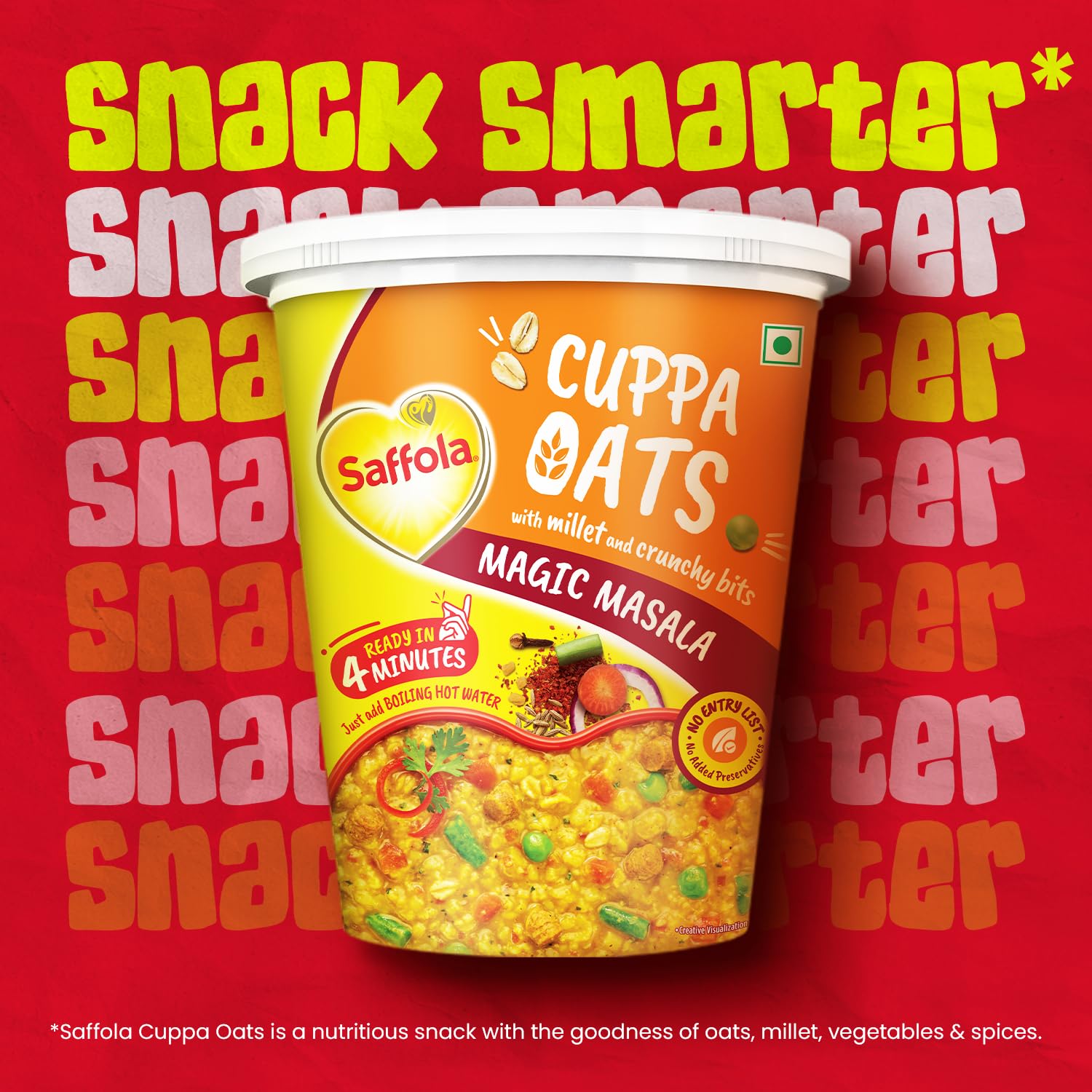 | Ingredients | Cereal (59.5%) [Oats (40%), Jowar Millet (19.5%)], Maltodextrin, Dehydrated Vegetables (9.7%) [Carrots (4%), Potato (3%), French Beans (1.8%), Onion (0.9%), Green Peas (0.9%)], Iodised Salt, Refined Rice bran Oil, ~Spices and Condiments, Semolina, Starch, Sugar, Natural & Nature Identical Flavouring Substance, Rice flour, Hydrolysed Vegetable Protein, Wheat Gluten, Flavour Enhancers (627, 631), Black pepper, Mineral ~Contains Onion, Turmeric, Pepper, Red Chilli, Cumin, Garlic, Fenugreek, Nutmeg, Clove Delicious multigrain Crunchy bits 8.2% |